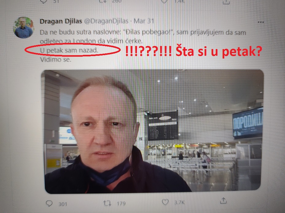 На страну све то. Човек без имена се појавио 01.04.2021. пред вратима Скупштине града Београда, не да ради, него да прети. Жена без презимена није била ту. Ни човек без савести није био ту. Он је у својим медијима обзнанио да је отишао да се прави Енглез. У Лондон. И још је граматички поручио „У ПЕТАК САМ НАЗАД“. Сви се питају шта је тиме хтео да каже? Шта си? Где си? У петак Ђ постаје назад? У петак се Ђ уназађује? Где назад, у петак? Како?