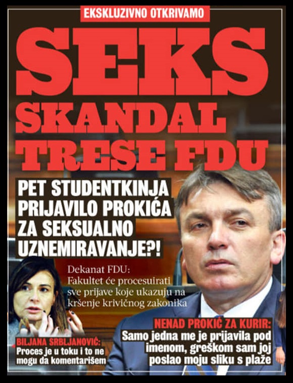 После афере „Мирослав Алексић“, на ФДУ је покренута платформа за пријаву насиља. Радна група „ФДУ против насиља“ је у свом Извештају од 8.4.2021. објавила да је пристигло 12 пријава против шест запослених. Пет студенткиња ФДУ пријавило је за сексуално узнемиравање Ненада Прокића, редовног професора. Члан радне групе „ФДУ против насиља“ је и Биљана Србљановић, редовна професорка ФДУ. Она је рекла: „Процес је у току и још увек не можемо причати о пријавама против појединаца, а за пријаве против професора Прокића нисам чула и не бих могла да коментаришем“. Декан ФДУ је већ унапред аболирао Прокића и рекао да се у свих пет пријава против Прокића ради о етичким прекршајима, а не кривичним делима. Да ли ће и Биљана Србљановић, као чланица радне групе „ФДУ против насиља“ аболирати свог бившег љубавника, остаје да се види?