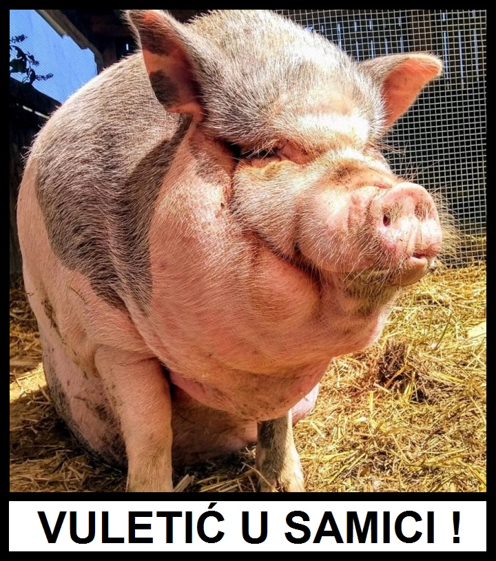 Дегенерација дела опозиције је довела до Ваше појаве у политичкој клоаки у којој пливате и Ви и Ваши шефови Тајкун са Мурицијуса, Канибал и Касапин. Изненадила ме је Ваша појава у политици. Мислио сам да тај дегенерисани део опозиције не може ниже да падне од покрета Ослобођења од сваке људскости, од Покрета смрдљивих Ногу, и Странке Слободне Пљачке. Може! Појавила се Ваша партија, Партија Педофила и Људождера – Канибала, ако Вам се више допада. Кокаинизирани редовни Педофиле, а ванредни професоре, Ви сте до сада били портпарол оружаног крила мафије и терора, портпарол Канибала и Касапина, повремено Тајкуна са Маурицијуса, а од сада сте Први Крмак у свом свињцу. Вас је мафија пре више година инсталирала на место потпредседника фудбалског клуба! Ви сте срамота за сваки спорт, а камоли за фудбал. Да ја поседујем свињац, не бих Вам дозволио да будете Крмак у том свињцу! Не, никако. Свиње би оболеле од Ваше свињске куге!