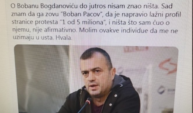 O opskurnosti Bobana Bogdanovića svedoči i to da on sebe opisuje kao biznismena koji razvija i prodaje firme (neistina), a tvrdi da se bavio i politikom – bio je član opozicionog PSG u vreme Saše Jankovića (istina). Bogdanović tvrdi da je blisko je sarađivao sa Sašom Jankovićem (neistina). O tome ko je Boban Bogdanović najbolje svedoči Sergej Trifunović 2019. godine (tada predsednik PSG) na Tviteru: „O Bobanu Bogdanoviću do jutros nisam znao ništa. Sad znam da ga zovu “Boban Pacov”, da je napravio lažni profil stranice protesta “1 od 5 miliona”, i ništa što sam čuo o njemu nije afirmativno“.