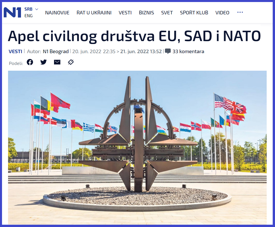 U zaključku, potpisnici antisrpskih optužbi i apela traže da NATO poveća svoj vojni angažman na Zapadnom Balkanu. Šta to podrazumeva videli smo prilikom zločinačke NATO agresije na Srbe u BiH 1994. i prilikom zločinačke NATO agresije na SRJ 1999. godine. Da li potpisnici ovog sramnog apela to traže od NATO?