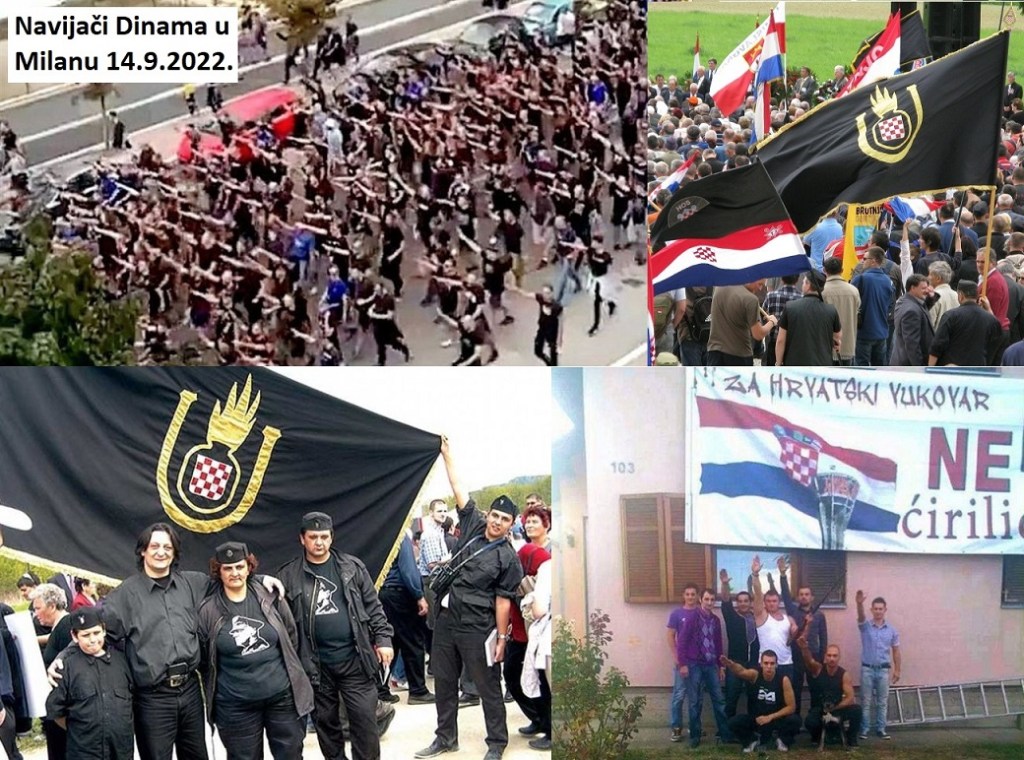 U Milanu je 14.9.2022. odigran meč Lige šampiona, između Milana i Dinama iz Zagreba, pred više od 60.000 hiljada gledalaca. Milano je pobedio sa 3:1. Na meču u Milanu bilo je prisutno oko 10.000 navijača Dinama. Navijače Dinama zovu „modri“ zbog Dinamove plave klupske boje i dresova. Italijanski, svetski i regionalni mediji su začuđujuće slabo propratili ogroman skandal koji su izazvali navijači Dinama. Video snimci tog skandala prodiru u javnost u poslednja dva dana. Njih 10.000 je na putu ka stadionu San Siro, promarširalo kroz centar Milana, pevajući ustaške pesme, pozdravljajući nacifašističkim pozdravom, kličući ustaški pozdrav „za dom spremni“! Svi navijači su bili obučeni u crno, od glave do pete. Nisu bili obučeni u „modro“, u plavo što su boje Dinama. Nosili su ustaška znamenja i obeležja. Ustašku zastavu su razvili i na stadionu. Ličili su na crnu ustašku legiju. Njihov fašistički i nacistički defile je delovao zastrašujuće.
