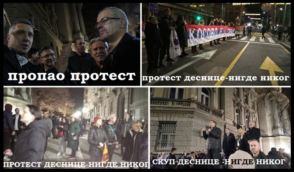U trenutku dok fašista Kurti pojačava nasilje i progon Srba na KiM, hapšenjima Srba, pljačkama, zastrašivanjem, pretnjama, i spiskovima za hapšenja Srba, na kojima se nalazi se čak 600 srpskih imena, desničari protestuju, navodno za Kosovo, a u stvarnosti protiv Srbije i njenog predsednika. Jedine poruke sa dva skupa desničara su uvrede upućene predsedniku Srbije, koji je na izborima ove godine, dobio podršku 60 odsto građana Srbije, tj. podršku 2,25 miliona građana. Sa druge strane ovi desničari ne mogu da okupe više od 100, 200 građana. Desničari na svojim skupovima uopšte ne pominju fašistu Aljbina Kurtija, a kamoli da ga osude. Ne pominju albanski fašizam, a kamoli da ga osude. Jedino pominju predsednika Srbije, Aleksandra Vučića, koga vređaju kao „izdajnika“.