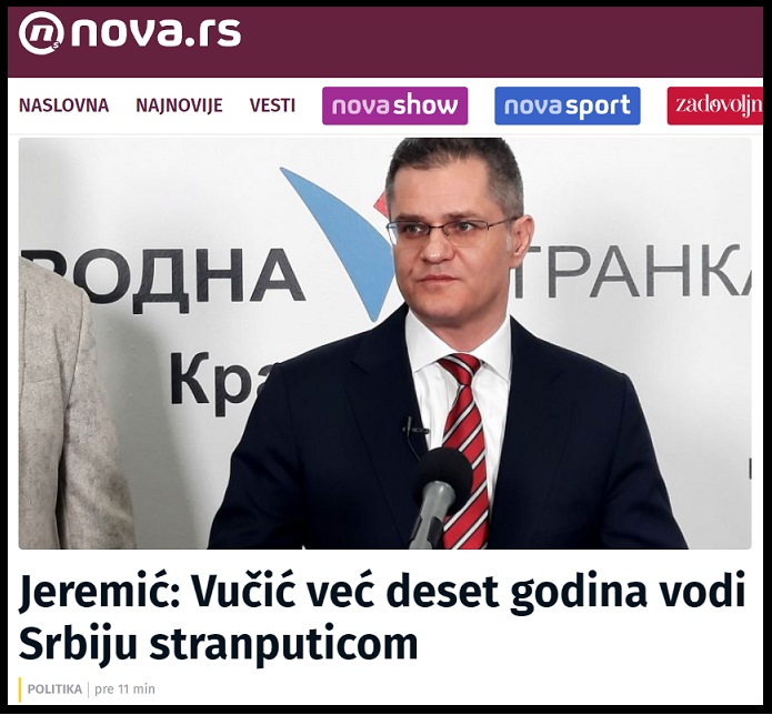 Kako Jeremić nema sopstvenu politiku, već živi kao politički parazit, koji pokušava da prisvoji Vučićevu državnu politiku, i predstavi je kao svoju, Jeremić je prinuđen da periodično iznosi neistine i izmišljotine poput ovih. Podsetiću da je Jeremić mnnogo puta ulovljen da govori neistinu u medijima. Na primer, on je 7.3.2019. na televiziji N1, odgovarajući na pitanje o poreklu svog bogatstva, ne trepnuvši obmanuo javnost izjavom da je zaposlen kao član borda međunarodne kompanije „Partners grup“, što je ova kompanija demantovala. Koliko je Jeremić neozbiljan i sklon neistinama, svedoči i njegova izjava na skupu od 17.3.2019., kada je mrtav hladan izjavio da Vučić pada do Uskrsa! Vasks 2019. je došao i prošao pre tri godine, a Vučić ne da nije pao, već je ojačao. A na izborima je pao i propao baš Jeremić. Slično toj neinteligentnoj izjavi, Jeremić je 2. 1. 2019., izjavio da Putin prezire Vučića. Četiri dana kasnije Putin je odlikovao Vučića jednim od najviših ruskih ordena. Lepo je i mudro rekao Dušan Radović: „Za izdajice, tužibabe i cinkaroše u beogradskim školama uvodi se novo priznanje – vukovac. Po imenu onog Vuka, koji je, prema narodnoj pesmi, izdao na Kosovu“.