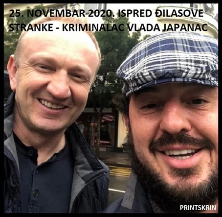 1.Vladimir Jovanović, alijas Vladimir Mrđić alijas Vlada Japanac. Dragan Đilas se 25.11.2020. sastao i slikao sa kriminalcem Vladom Japancem, ispred prostorija Đilasove SSP, u Kralja Milana. Vlada Japanac se prvi put pominje u „Beloj knjizi“ MUP-a još 2001. kao pripadnik Zemunskog klana. Nekoliko sati posle sastanka sa Đilasom, Vlada Japanac je uhapšen i mediji su izvestili da ga čekaju 4 godine zatvora. Uhapšen je na osnovu međunarodne poternice i to zbog izdržavanja zatvorske kazne od 2 godine i 10 meseci zbog krivičnog dela iznude, i godinu i tri meseca zbog sprečavanja službenog lica u izvršenju službene radnje. Vlada Japanac ima ozbiljan i bogat kriminalni dosije u kojem su brojna teška krivična dela. U zatvorima je proveo niz godina.