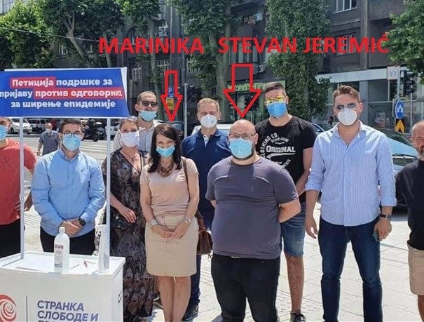 5. Dušan Jeremić. Mediji su 30.07.2021 izvestili da je osuđivani nasilnik Dušan Jeremić, pripadnik obezbeđenja lidera SSP, Dragana Đilasa. Jeremić je član SSP. Dušan Jeremić se time javno hvalio na društvenim mrežama i u medijima. Na fotografijama sa protesta SSP, Đilas i Marinika su se više puta našli u društvu Dušana Jeremića koji je osuđivan zbog više krivičnih dela, zbog čega je boravio u zatvoru. Đilas se slikao sa Dušanom Jeremićem.