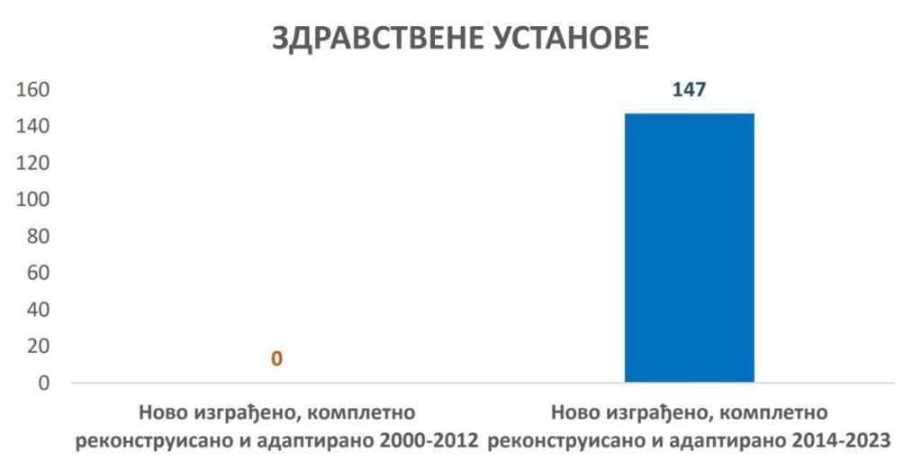 – Predsednik Vučić i SNS su izgradili 147 bolnica, zdravstvenih centara, zdravstvenih objekata. Bivši režim je izgradio NULA bolnica!