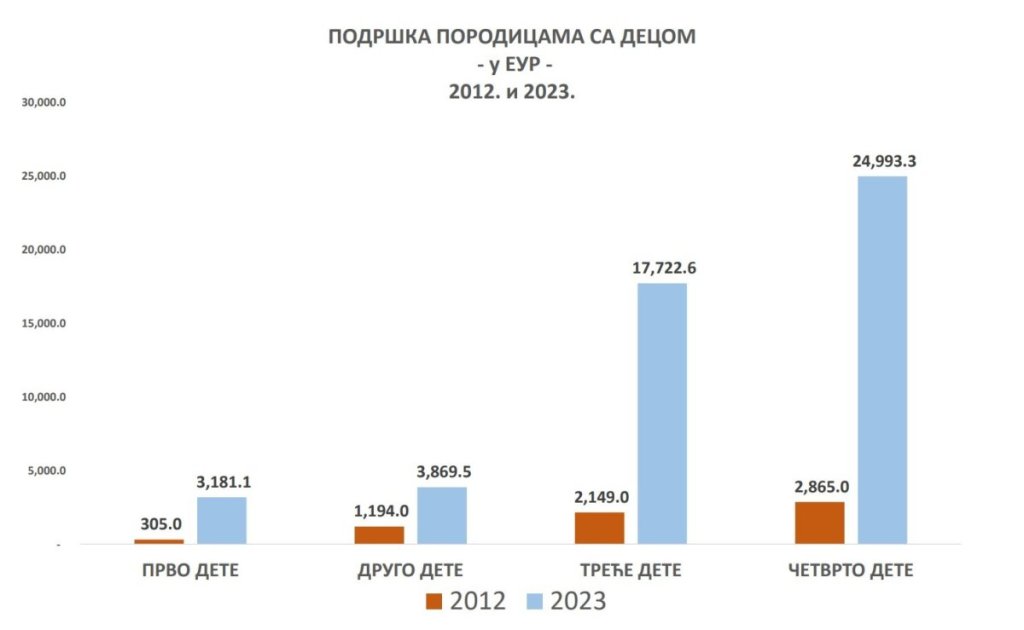 – Podrška porodici za četvrto dete je 2012. bila samo 2865 evra. Danas, 2023., je fantastičnih 24993 evra!