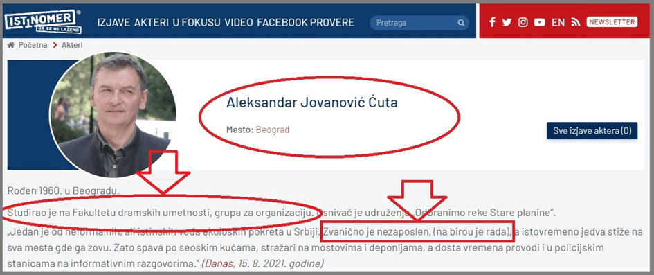 Ćuta Preletačević je izgubio iz vida da jedna druga radnja koju je počinio, jeste krivično delo. O čemu se radi? Aleksandar Jovanović Ćuta Preletačević (58) je 2022. godine, kao svoje zanimanje i obrazovanje, na listi koalicije „Moramo“, naveo „producent“. Isto to je naveo i 2023. godine na listi „Srbija protiv nasilja“. Aleksandar Jovanović Ćuta nije producent. On je student. Nije završio Fakultet dramskih umetnosti- FDU, odsek za produkciju, ili raniji odsek za organizaciju. Produkcija se studira na FDU. Dokaz. U biografiji Aleksandra Jovanovića Ćute na sajtu „Istinomera“ stoji: „Studirao je na Fakultetu dramskih umetnosti, grupa za organizaciju. Zvanično je nezaposlen, (na birou je rada)“. U biografiji Aleksandra Jovanovića Ćute na sajtu „Vikipedije“ stoji: „Studirao je na Fakultetu dramskih umetnosti, organizaciona grupa“. U tekstu u listu „Vreme“ od 22.2.2022. koji predstavlja kandidata za poslanika Aleksandra Jovanovića Ćutu, stoji: „Studirao je na Fakultetu dramskih umetnosti. Zvanično je na birou rada“.