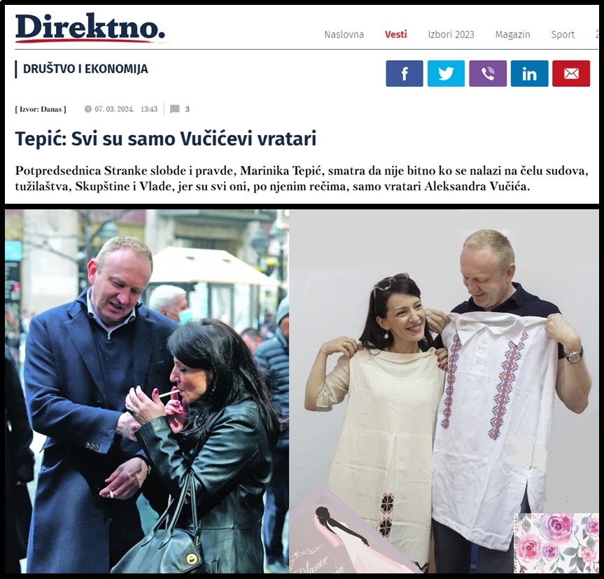 Visprena Marinika, danas je zablistala u Šolakovom toaletoidu „Danasu“ i izjavila: „Nebitno je ko je na čelu sudova i tužilaštava, pa i Vlade i Skupštine, jer su svi oni samo Vučićevi vratari“. Lupi Marinika i ostade živa.