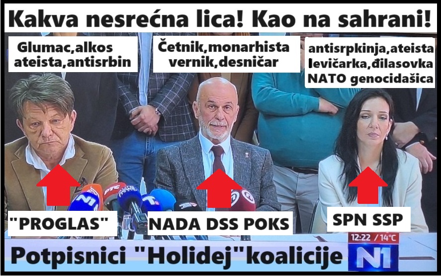 „Nada-DSS-POKS“ su navodno monarhisti, vernici, desničari, antiNATO, proRUSI, anti EU. Od danas više nisu! Od danas je program DSS-POKS isti kao Đilasov i Marinikin. Od danas su DSS i POKS, antisrbi, proNATO, antiRUSI, peta kolona, Kurtijeva ekspozitura, podržavaju lažnu državu Kosovo, optužuju Srbiju za genocid u Srebrenici.
