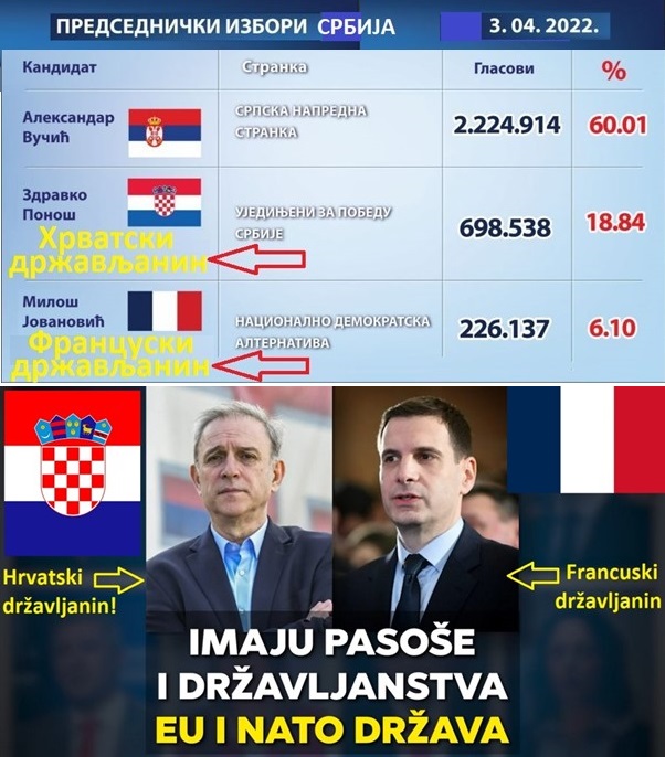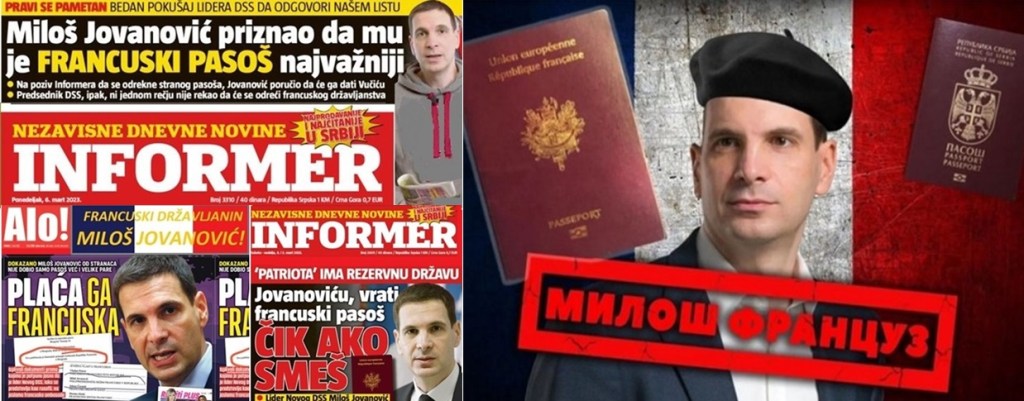 Miloš Jovanović je decenijama krio od javnosti da ima francusko državljanstvo. To je od građana sakrio i tokom izbora za predsednika Srbije 2022. godine, kada je kao francuski državljanin, bio kandidat ta predsednika Srbije. Osvojio je svega 6 odsto, ali bi osvojio znatno manje glasova, da su građani znali istinu – da je kandidat za predsednika Srbije – Miloš Jovanović, francuski državljanin. Miloš Jovanović je na izborima 2022. godine, obmanuo građane, zbog toga što je prikrio činjenicu da je francuski državljanin. Zbog čega se Miloš Jovanović ne kandiduje za predsednika Francuske? Kasnije, posle izbora 2022. godine, Jovanović je iznosio neistinu, da je odavno poznato da je on francuski državljanin!?! Nije sporno da obični građani mogu imati dvojno državljanstvo Francuske, Hrvatske i drugih država. Međutim, za lidere stranaka, za kandidate za predsednika Srbije, za samoproglašene velike patriote poput Miloša Jovanovića važe drugi, strožiji aršini. Nezamislivo je npr. da kandidat za predsednika Francuske ima još neko državljanstvo. Kandidat za predsednika bilo koje države, ne sme da ima rezervnu otadžbinu. Miloš Jovanović ima rezervnu domovinu – Francusku. Sa druge strane predsednik Aleksandar Vučić nema rezervnu otadžbinu. Vučiću je samo Srbija na srcu!