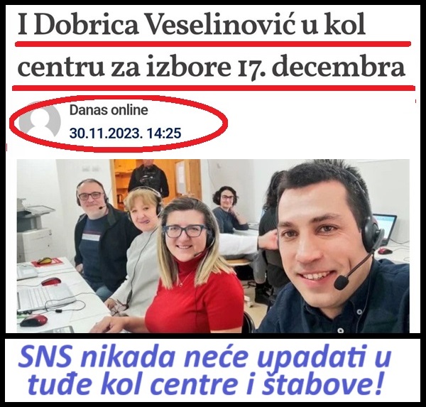 Kol centri su normalna, zakonita stvar. Izborni štabovi su normalna, zakonita stvar. Izgleda da je opozicija toliko loše organizovana, toliko slaba i glupa, da nema izborne štabove, da nema kol centre. Nemaju. Prvo, nemaju članstvo i simpatizere, pa nema ko da im radi u štabovima i kol centrima! Drugo, ne trebaju im, jer imaju jako malu podršku, pa nemaju koga da zovu. Totalni gubitnici. Zbog toga njima luzerima, rad u kampanji izgleda jako čudno. Njima su izborni štabovi misaona imenica. Za kol centre su čuli, ali, po pravilu, ne znaju kako to da organizuju. Setimo se, opozicija se hvalila (Lutovac) kako neki od njih prevozom pređu dnevno čak 10 kilometara. Svaki aktivista SNS, prevozom, dnevno pređe namanje 100 kilometara. Funkcioneri obiđu više mesta, pa pređu mnogo više kilometara. Opozicionari vole da bazdrliču po vračarskim i starogradskim kafićima, i tu vode žestoku kampanju sa kafama i vinjacima! Mrzi ih stojsere da rade! Setimo se, u poslednja dva izborna ciklusa (2022. i 2023.), u izbornoj noći, u štabu opozicije se pokvario, crko, trokirao sistem za unos i praćenje izbora. Pa opozicija bi pokvarila i abakus, tj. dečiju računaljku!