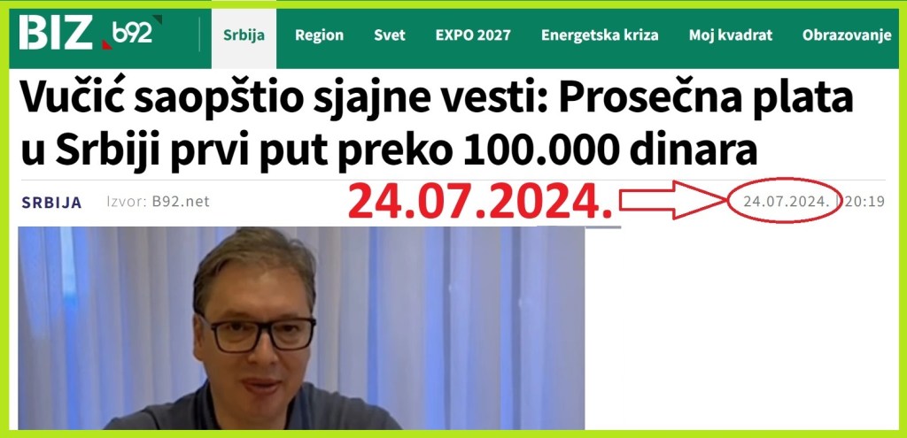 Sada je prosečna plata u Srbiji 830 evra, a nezaposlenost je 9% još od 2020. godine. Oba uslova za Đilasovo povlačenje iz politike su ispunjena cele ove godine, a Đilas nikako da ispuni svoje obećanje od pre 10 godina. I onda se lažov Đilas usuđuje da od Vučića traži ostavku i da ga optužuje da iznosi neistine. Đilase podnesi ostavku, i povuci se iz političkog života kao što si obećao. PLATE SU VEĆE OD 800 EVRA, A NEZAPOSLENOST JE 9%! Dragan Đilas nije ostvario cilj koji je pomenuo, već je to ostvario fantastični predsednik Aleksandar Vučić! Zbog čega onda Đilas traži ostavku predsednika Vučića? Zbog toga što je ostvario cilj koji Đilas pominje? Zbog toga što je uzdigao Srbiju i prosečnu platu podigao sa 320 evra koliko je bila u Đilasovo doba 2012., na 800 evra 2024. godine? Zbog toga što je nezaposlenost sa 25% koiko je bila u Đilasovo doba 2012., sveo na rekordno niskih 9% 2024. godine? Da li je Đilas normalan?