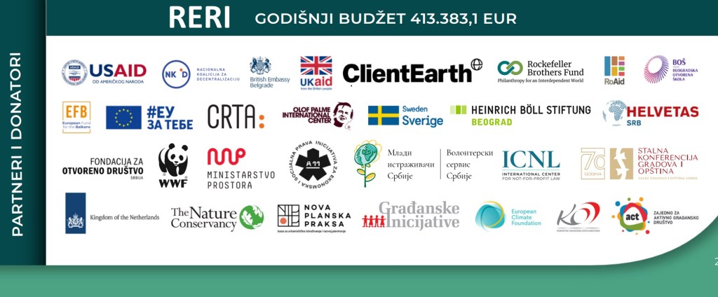 U Izveštaju RERI za 2022. godinu, koji stoji na sajtu RERI, vidi se da je godišnji budžet RERI za projekte 2022. godine, bio 413.383 evra. U tom Izveštaju stoji da su Donatori za 2022. bili: Američka agencija za međunarodni razvoj (USAID), Fondacija za otvoreno društvo, Srbija, Rockefeller Brothers Fund, Ambasada kraljevine Holandije, Britanska Ambasada u Beogradu, Ambasada Republike Rumunije, Nacionalni demokratski institut, „Heinrich Böll Stiftung ” fondacija, Evropski fond za Balkan, Nacionalna koalicija za decentralizaciju, CRTA, Delegacija Evropske unije u Srbiji, Helvetas Swiss Intercooperation Serbia, Švedska agencija za međunarodnu razvojnu saradnju (SIDA), Beogradska otvorena škola, Olof Palme centar (Švedska) itd.