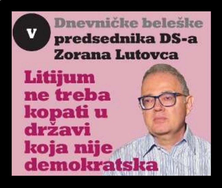 Vrhunac bezumlja opozicije je besmislena izjava predsednika DS, Zorana Lutovca od 3.8.2024. da „litijum ne treba kopati u državi koja nije demokratska“. Lutovac je mesecima pre ove izjave, govorio da se litijum nikada ne sme iskopavati, jer će potrovati celu Srbiju. Iz njegove izjave od 3.8. se vidi da mu odjednom nije problem litijum, već to što opozicija nije na vlasti. Iz ove izjave Zorana Lutovca, vidimo da bi on iskopavao litijum kada bi bio na vlasti. Kompaniju Rio Tinto je u Srbiju 2001. dovela sadašnja opozicija, dok je bila na vlasti. I to je bio dobar potez. SNS ne napada opoziciju zbog toga što je dovela Rio Tinto, i htela da iskopava litijum, već zbog toga što opozicija to licemerno krije, predstavljajući se kao večiti protivnik Rio Tinta i litijuma. Ne stoji ni Lutovčeva teza da je Srbija nedemokratska. Čemu služi demokratija? Svrha demokratije je da narod dobro živi, da ima visoke plate i penzije. Prosečna zarada u Srbiji 2012. u vreme vlasti Lutovca i DS je bila 366, sada je 855 evra. Rast BDP u drugom kvartalu 2024. je +4,2%. Na kraju vlasti Lutovca i DS, stopa rasta BDP je bila katastrofalna tj. negativna „-0,7%“. Zaključak – Srbija je sada demokratska zemlja, a do 2012. nije bila.