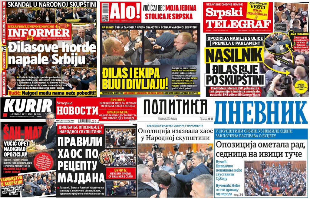 Obrazloženje. Đilas i opozicija lešinare nad tragedijom u Noovom Sadu. Prvo su organizovali proteste, koji su propali, zbog malog broja ljudi, pa su se odlučili za drugu taktiku – disperziju nasilja koje vrše desetine, maksimalno sto ljudi, na više mesta, svakodnevno, u pokušaju da izazovu haos, sukobe i građanski rat. Neuspešno je i to.