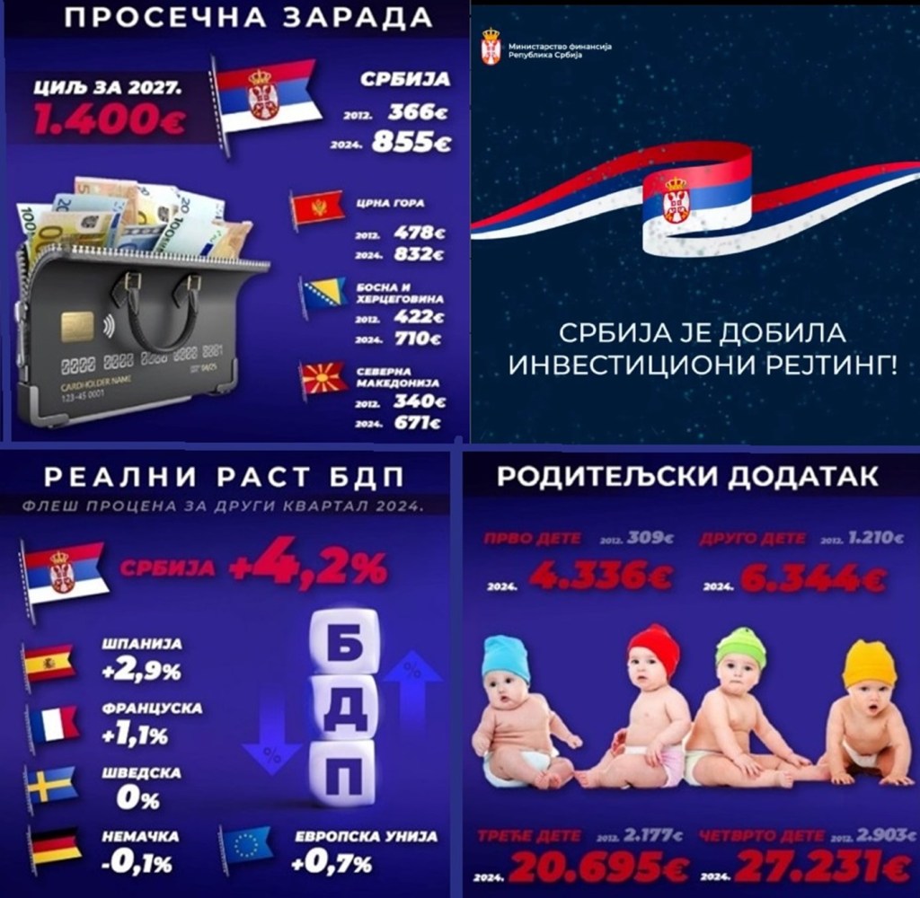 Obrazloženje. Da bi sačuvali našu decu, potrebno je da ova vlast ostane. Da bi sačuvali našu decu, potrebno da opozicija nikada ne dođe na vlast. Kada su oni bili na vlasti od 2000. do 2012. godine, temeljno su uništili sve uslove za normalan život dece. Otpustili su 500.000 roditelja naše dece. Plate roditelja dece u Srbiji su u doba vlasti opozicije bile 340 evra. Tim novcem se nisu mogla normalno odgajati deca. U doba vlasti opozicije roditeljski dodatak za prvo dete je bio samo 309 evra, za drugo dete samo 1.210 evra, za treće dete samo 2.177 evra, za četvrto dete samo 2.903 evra. To nije bilo dovoljno da bi sačuvali našu decu. Da bi sačuvali našu decu potrebno je da roditeljski dodatak bude kao sadašnji (2024.), za prvo dete 4.335 evra, za drugo dete 6.344 evra, za treće dete 20.695 evra, za četvrto dete 27.231 evra. U 2025. gorini, roditeljski dodatak će biti još veći. Đilas i opozicija se protive ovako visokim roditeljskim dodacima i nikada ne glasaju za to u Skupštini Srbije. Da bi sačuvali našu decu potrebni su vrtići. U Beogradu danas, 80.000 dece ide u vrtiće. U doba kada je Đilas bio gradonačelnik u vrtiće je išlo samo 40.000 dece. Kada je Đilas bio gradonačelnik, „da bi sačuvao našu decu“ on je nezakonito udvostručio cene u vrtićima, zbog čega su ga tužile desetine hiljada roditelja naše dece. Da bi sačuvali našu decu, mi iz SNS smo tu odluku ukinuli. Kada je Đilas bio gradonačelnik, „da bi sačuvao našu decu“ on je nezakonito podigao kuću „Velikog brata“ sramnog rialitija, na zemljištu dečije ustanove „Pionirski grad“. Da bi sačuvali našu decu, mi iz SNS smo tu kuću uklonili. Da bi sačuvali našu decu, potrebni su nam, na primer, strani univerziteti i fakulteti u Srbiji, što ova vlast želi, zajedno sa predsednikom Vučićem. Đilas je protiv toga.