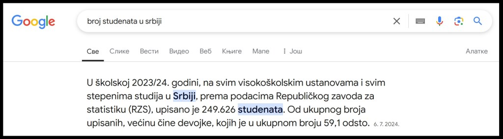 „Studenti brojnih fakulteta Univerziteta u Beogradu, Novom Sadu, Kragujevcu i Nišu više od nedelju dana traže ispunjenje zahteva: