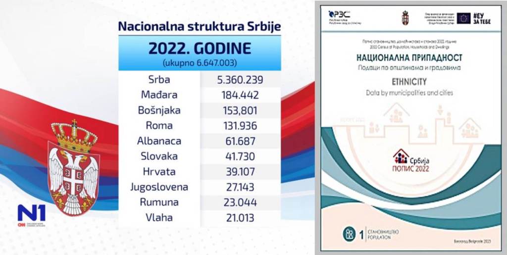 Ukupan broj stanovnika Beograda je 1.681.405. Popis je obuhvatio samo građane Srbije, a ne strance koji žive u Srbiji. Kao „Srbi“ se na popisu izjasnio 1.449.241 građanin. Ne navodim u ovom tekstu npr. Mađare i Rome, pošto je jasno da oni nisu zainteresovani za proteste opozicije. Navodim samo one etničke grupe građana koje bi mogle biti verovatni učesnici protesta opozicije. Po Popisu 2022. Albanaca i Goranaca ima 6000. Treba imati u vidu da se većina Albanaca izjasnila kao Goranci. Bošnjaka ima 1515. Bugara 889. Vlaha 336. Jugoslovena 10499. Makedonaca 4293. Muslimana 2718. Nemaca 341. Rumuna 1064. Slovenaca 1050. Ukrajinaca 458. Hrvata 4554. Crnogoraca 5134. Ostalih 8900. Kao „Regionalnu pripadnost“ navelo je 1007 građana. 30130 građana je odbilo da se izjasni i odgovori na pitanje o nacionalnoj pripadnosti.