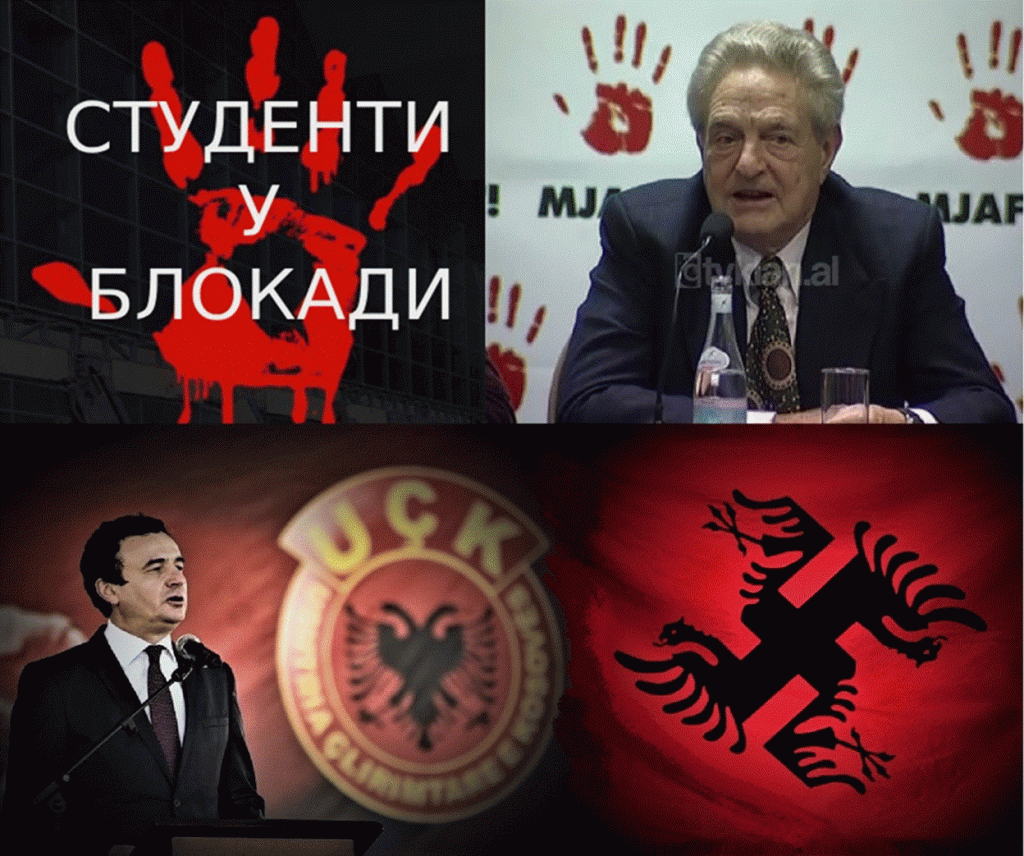 15.3.2025.Beograd. Pripadnici opozicije i njihovi studenti su, na Terazijama, krajnje skaredno i odvratno, u po bela dana, razvili zastave terorističke organizacije UČK i zločinačkog NATO, koji nas je tako bezumno ubijao.