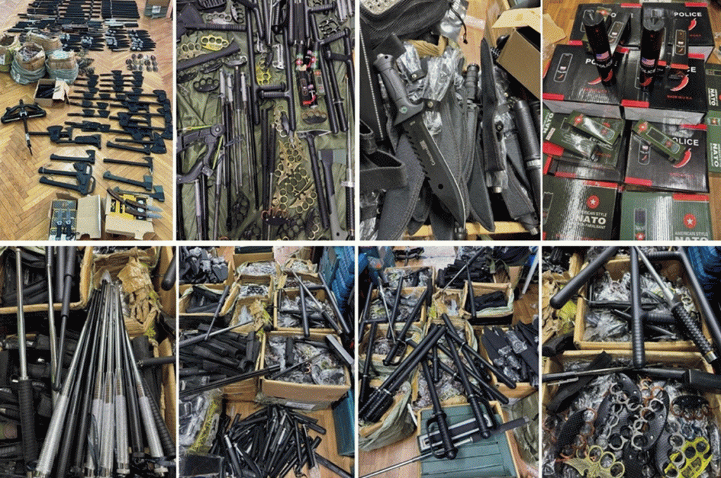 13.3.2025. MUP je saopštio da je na prilazima Beogradu, pronašao ogromne količine oružja – stotine sekira, desetine samostrele, stotine palica, stotina šokera, stotine noževe, stotine metalnih boksera, i hiljade limenki suzavca.