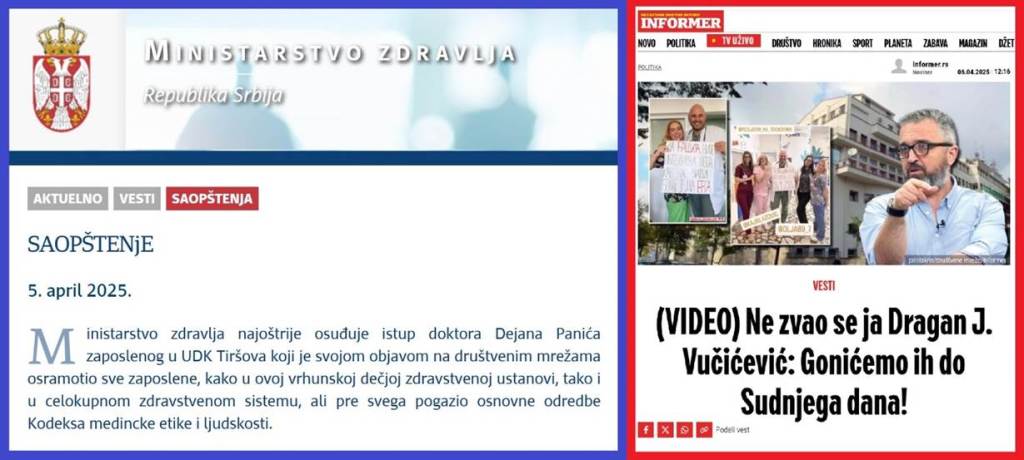 Bravo za Ministarstvo zdravlja! Ministarstvo zdravlja najoštrije je osudilo diskriminatorni skandal dr. Dejana Panića, dr. Zorane Stanković i drugih zaposlenih u Dečijoj klinici Tiršova, koji su svojom objavom na društvenim mrežama osramotili sve zaposlene u ovoj dečjoj zdravstvenoj ustanovi, i u celokupnom zdravstvenom sistemu. Pogazili su osnovne odredbe Kodeksa medicinske etike i ljudskosti – kako navodi Ministarstvo zdravlja.
