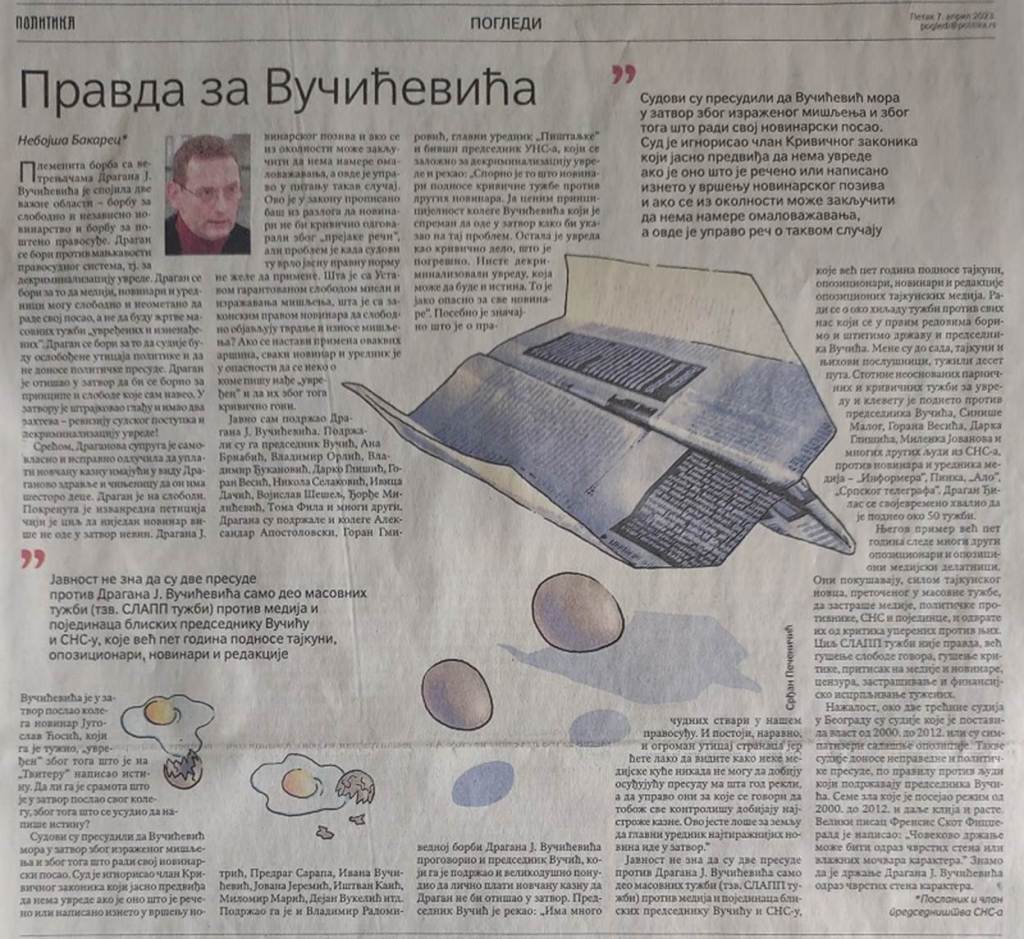 Najoštrije osuđujem napad na porodicu i porodičnu kuću Dragana J. Vučićevića, glavnog urednika medijske kuće „Informer“, mog prijatelja i brata. Napadači su napali, vandalizovali i oštetili skromnu kuću Dragana J. Vučićevića, na Banovom brdu. Dragan J. Vučićević je otac šestoro dece, od kojih je troje maloletno. Više napadača iz opozicije je gađalo kuću kamenjem, farbom i fekalijama, i pretilo porodici Vučićević. Kako je oštećena i kamena fasada, moguće je da je korišćeno i vatreno oružje. Informacija o napadu je objavljena na sajtu Informera, pre dva sata, ali nema osuđujuće ili bilo kakve reakcije UNS, NUNS, OEBS., ODIHR, ili bilo kog opozicionog medija. Svi oni nikada nisu osudili prethodne fizičke napade na Dragana J. Vučićevića. Njega su u okolini Terazija, 28.9.2022., dva puta fizički napale dve nepoznate osobe, od kojih ga je jedna udarila u glavu, sa leđa. U prethodne dve godine opozicija je oko 20 puta napala novinarke i kamermane Informera, Branku Lazić (najmanje 8 puta), Milicu Škorić (tri puta) Lidiju Makragić, Anju Vesović itd.