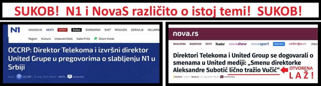 Konstatujem da portali „NovaS“, „Danas“ i „Raskrikavanje“ otvoreno lažu, da prikrivaju šta kaže tekst portala „OCCRP“ (ne postoje dokazi da je Vučić dao nalog Lučiću ili bilo kome drugom da izvrši promene na N1) i da umesto toga objavljuju lažne vesti.