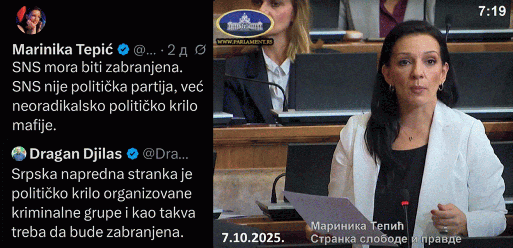 Đilas, Marinika i Dušan Nikezić često pozivaju na zabranu SNS i kažu: „Srpska napredna stranka je političko krilo organizovane kriminalne grupe i kao takva treba da bude zabranjena“. Vrlo je neuputno da oni iznose ovakve bezumne neistine, zbog toga što je upravo njihova stranka – SSP – političko krilo mafije tj. organizovana kriminalna grupa. Đilas ima ili je imao, šezdesetak saradnika i funkcionera SSP i DS, koji su ili kriminalci ili su hapšeni zbog krivičnih dela ili su optuživani za ista!