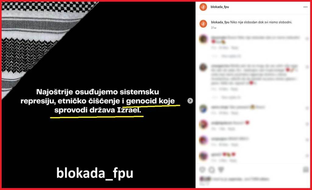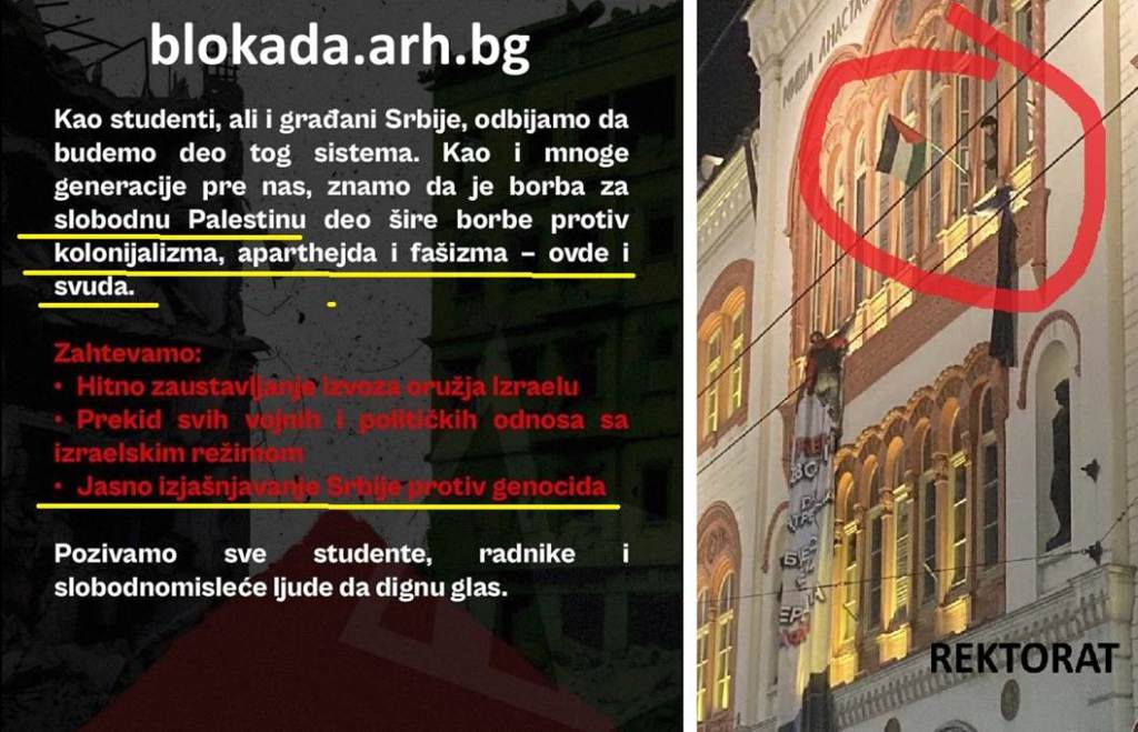 Neshvatljivo je da su studentski plenumi prihvatili ideološke postavke Hamasa i pišu o Izraelu kao o tzv. Državi Izrael, dakle državi koja je nelegitimna. Imajući na umu činjenicu da Srbija ima diplomatske odnose sa Izraelom, postavlja se pitanje šta državne institucije poput različitih fakulteta treba i moraju da učine kako bi se sprečio jaz između zvanične državne politike i privatnih izgreda na državnim ustanovama?