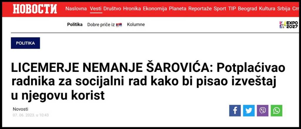 Krajnje licemerno propala NovaS, propali Nemanja Šarović i propali ustaški mediji iz Zagreba, prikrivaju krivična dela koja je počinio propali političar Nemanja Šarović. Evo ko je Nemanja Šarović!