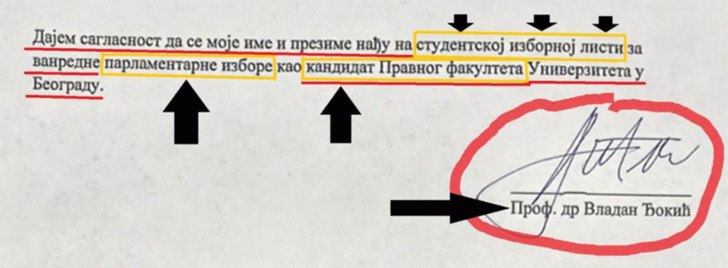 Strašna stvar je isplivala na površinu, kada su „Studenti u blokadi“, 5. maja 2025. objavili svoj zahtev da se održe vanredni izbori, a u tome ih podržala opozicija, mnogi rektori, dekani, i profesori, na čelu sa rektorom Đokićem. Ta strašna stvar je činjenica da su se studenti blokaderi, rektor, dekani i deo profesora, svih 11 meseci 2025. godine intenzivno bavili politikom na fakultetima, da su na univerzitetima organizovali političko i stranačko delovanje. Svih 11 meseci oni su govorili neistinu da nemaju političke ambicije, da se ograđuju od politike. Svih 11 meseci su studenti blokaderi, deo rektora, dekana i profesora, na fakultetima ostvarivali svoje političke ambicije i bavili se politikom i strančarenjem. Strašna stvar je isplivala na površinu kada je rektor Đokić, 20. maja 2025. potpisao saglasnost da bude na „studentskoj izbornoj listi za vanredne parlamentarne izbore kao kandidat Pravnog fakulteta“!?! (Đokić je arhitekta).