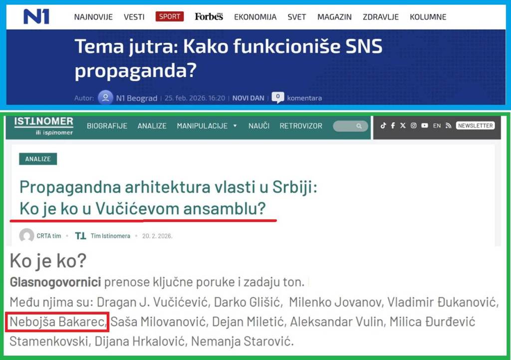 OBOŽAVAM KADA ME SATANIZUJU ANTISRPSKI MEDIJI! DIŽU MI REJTING! Ponosan sam što su me Istinomer i CRTA, stavili na 8. mesto (osmo od 54.) u hijerarhiji nas koji branimo državu u medijima. Hvala im na tome i na tome što su me stavili u najbolje društvo! Da vas obavestim, dragi prijatelji sa društvenih mreža, tokom 2025. godine bio sam 182 puta na TV-u. Tokom 2026. godine, 24 puta sam bio na TV! Tokom poslednjih 16 meseci napisao sam i 180 tekstova. Ponosim se time što se borim za državu i istinu!