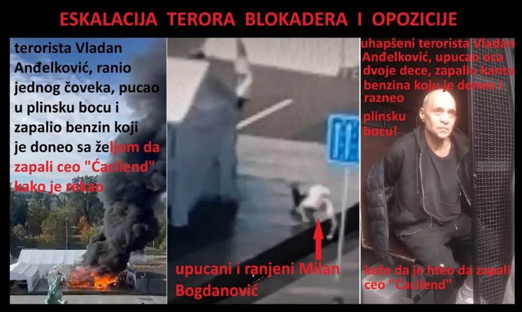 Terorista Vladan Anđelković, prijatelj Andreja Plenkovića, je 22.10.2025. godine izveo teroristički napad ispred Skupštine Srbije. Anđelković je član blokaderskog Zbora Stari grad. Anđelković je došao iz Hrvatske 17.10.2025. iz Rijeke, gde ima kuću i gde živi pola godine. Anđelković je član blokaderskog Zbora Stari grad. Ima prebivalište na opštini Stari grad. Vladan Anđelković je 22.10.2025. došao ispred Skupštine noseći kantu sa benzinom, i bio je naoružan pištoljem. Ušao je u jedan od šatora i tamo polivao benzin. Vladan Anđelković je pucao u člana SNS, Milana Bogdanovića, oca troje dece, u nameri da ga ubije. Bogdanović je teško ranjen. Anđelković je potom izazvao ogroman požar. Terorista Anđelković je dobrovoljno priznao zločin u potpunosti. Uhapšen je odmah i zatvoren.