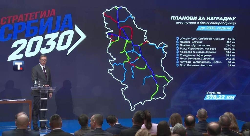 Predsednik Vučić izjavio je da će država u periodu od 2028. do 2035. uložiti najmanje 14,4 milijardi evra u sektor energetike. Nuklearna elektrana će biti izgrađena do 2040. Do sada je izgrađeno 622 km autoputeva, gradi se 380 km autoputeva, a do 2035. biće izgrađeno još 578 km autoputeva. To je 1.580 km autoputeva. Do 2035. biće izgrađeno 1.219 km železničkih pruga!