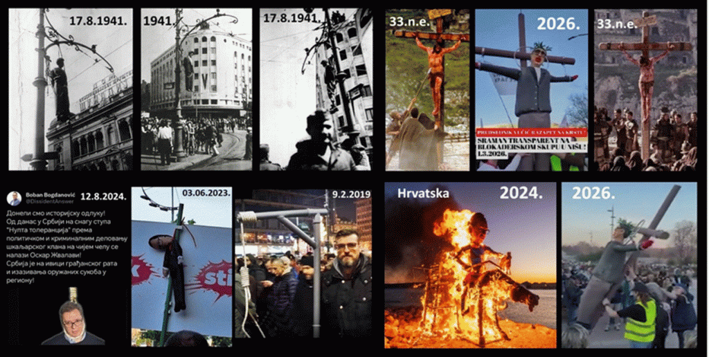 Nažalost, tokom marta 2026., videla se očigledna odluka blokadera i opozicije, da se „pumpa“ tako što će svaki dan pretiti smrću predsedniku Vučiću. Razlog je naravno bio – izbori u 10 opština 29.3.2026. Pravi program za tih 10 opština opozicija i blokaderi nisu imali – jedini program za 10 opština, opozicije i studenata blokadera, bio je „ubiti Vučića“. Evo dela hronologije pretnji smrću predsedniku Vučiću u martu 2026 .: 1. mart: Poziv blokadera na ubistvo Vučića, razapinjanjem na krstu u Nišu. 2. mart: Hapšenje blokadera Predraga S. (58), koji je postao dostupan policiji, zbog pretnji smrću Vučiću, nabijanjem na kolac, čerečenjem i spaljivanjem na lomači. 3. mart: Jeziva karikatura koju je objavila blokaderka Ljiljane Bralović, je pretnja smrću, koja poziva na probadanje i smrtno ranjavanje predsednika Srbije. 4. mart: Blokader je pretio smrću kukom i motikom, predsedniku. 7. mart: Blokader Vladan Velimirović, preti i kaže „UBITI VUCICA“… 11. mart Blokader Danijel Pinter kaže: „Ubimo na Terazijama Vučića“ 12. mart Blokader Danijel Pinter kaže: „15.3.2026. Odsecimo glavu Vučiću na Terazijama“. 16. mart: Blokader Vladan Velimirović, preti i kaže „Ubiti zlotvora, smrt Vučiću“. 16. mart Blokader Vladan Velimirović, iz Vrnjačke Banje, preti i kaže ponovo „Smrt Vučiću“. 22.mart. Dvojica blokadera, Nikola M. i Hamza Z., su uhapšena u Novom Pazaru zbog sumnje da su uputila pretnje predsedniku Srbije, Aleksandru Vučiću. 23. mart. Blokader Vladan Velimirović (64), koji je više puta uputio najstrašnije pretnje smrću predsedniku Srbije Aleksandru Vučiću na „Iksu“, uhapšen je.
