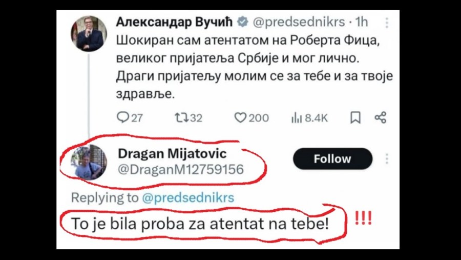 Nebojša Bakarec, poslanik i član predsedništva SNS Najoštrije osuđujem pretnje smrću upućene predsedniku Republike Srbije Aleksandru Vučiću. Dve majske tragedije nisu opametile bolesnike i ludake. Vidimo da ima poremećenih koji su inspirisani pokušajem ubistva Roberta Fica, i sada prete ubistvom predsedniku Vučiću. Podsećam da su upravo ovakvi bolesnici i ludaci koji smrću prete predsedniku Vučiću,…